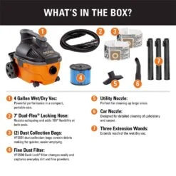HART 6 Gallon 5 Peak HP Stainless Steel Wet/Dry Vacuum, VOC608S 3702 | BigEasyMart.com