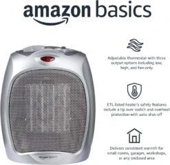 Amazon Basics 1500W Ceramic Personal Heater With Adjustable Thermostat, Silver | BigEasyMart.com
