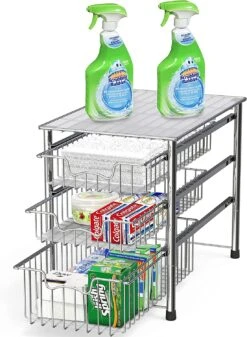 Simple Houseware Stackable 3 Tier Sliding Basket Organizer Drawer, Chrome | BigEasyMart.com