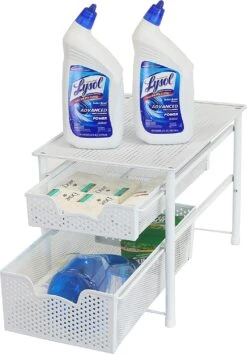 Simple Houseware Stackable 2 Tier Sliding Basket Organizer Drawer, Silver | BigEasyMart.com