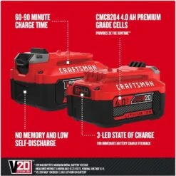 CRAFTSMAN V20 20-Volt 2-Pack 4 Amp-Hour; 4 Amp-Hour Lithium Power Tool Battery | BigEasyMart.com