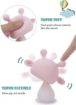 Pandamelon Silicone Baby Teething Toys Rattling, Mushroom Teether, Pink.