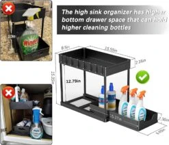You will need this 2-tier storage shelf. Bottom sliding drawers allow you to easily access or view storage items under the sink in limited spaces or even in corners, keeping your kitchen cabinets, under the sink and countertops organized without clutter, saving you time and effort. Multi-purpose storage organizer: kitchen, bathroom, laundry room, office, storage room, dressing table, etc.