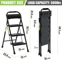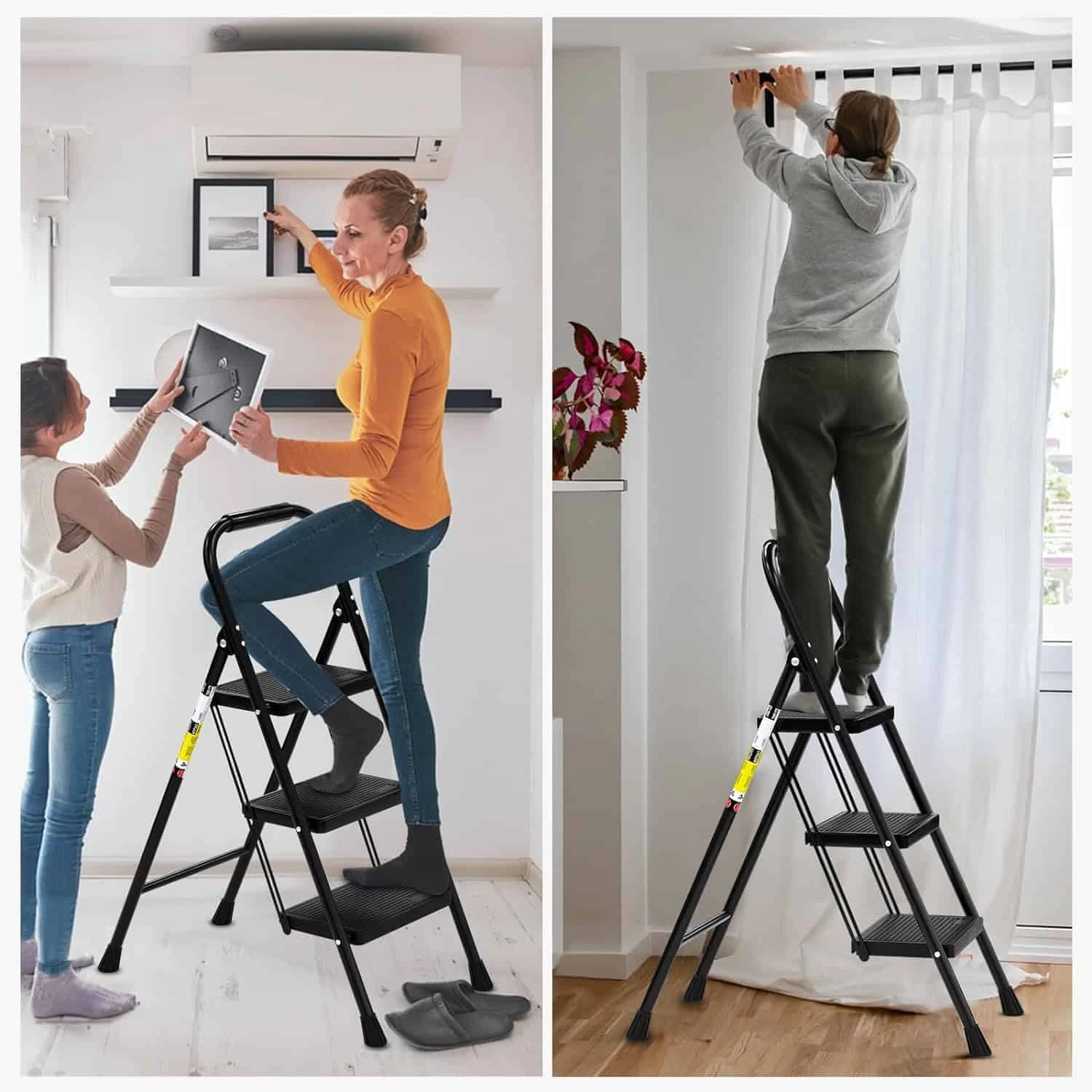 - 3 STEP LADDER STOOL WIDELY USED:The sponge handle makes the ladder easy to carry. This is your best choice in the kitchen, utility room, and dressing room, Whether it is cleaning cabinets or tidying up closets, you can rest assured to use it, providing you with a higher safety height, If you don’t use a ladder, it can be used as a beautiful plant stand