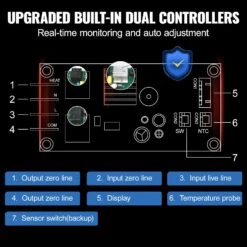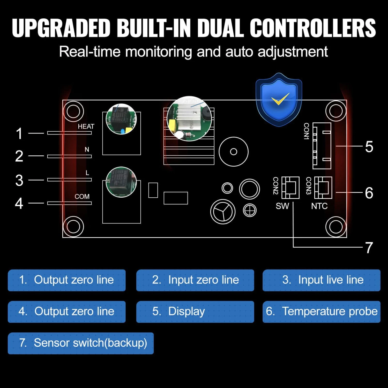 - Safety features include a double-control circuit, automatic shutdown, heat-resistant gloves, and tape.