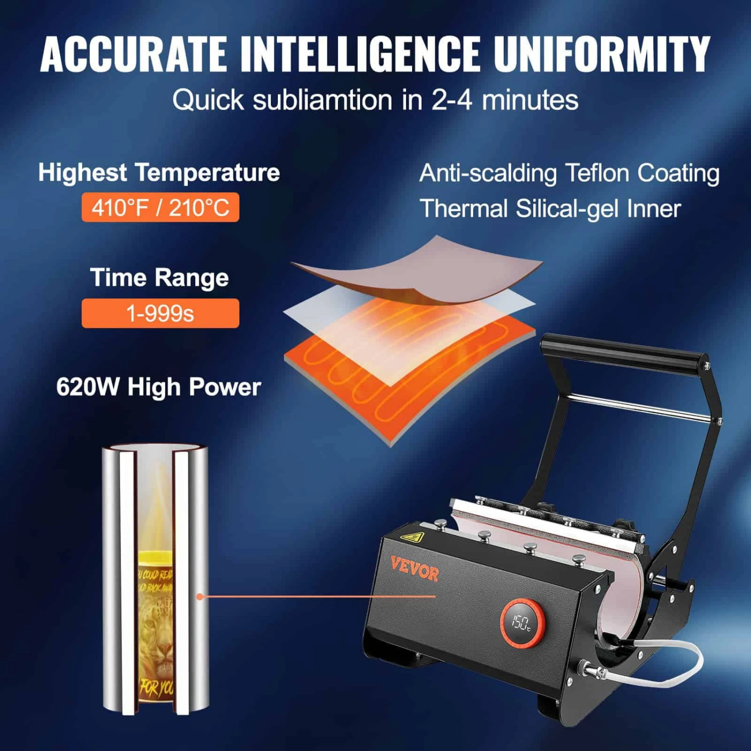 - Reliable sublimation transfers with a 620W heating element and silica-gel liner can be used with ceramics, stainless steel, and glasses.
