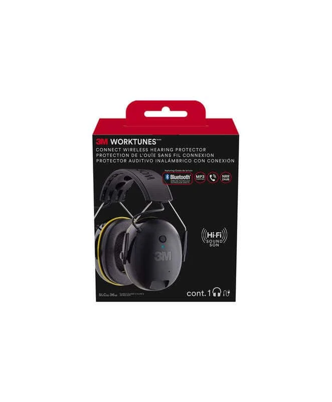 3M WorkTunes 24 dB Over-the-Head Hearing Protector Earmuff Black/Yellow 1 pair