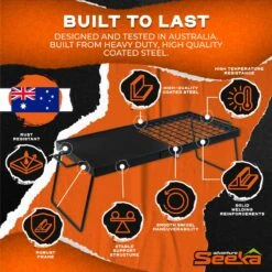 - HEAVY DUTY & COMPACT – Made from high quality coated steel with sturdy legs, this portable folding camping grill has been carefully designed with space in mind. Our unique and simple folding design makes this barbecue ultra compact and won’t take up too much space in your already loaded vehicles.