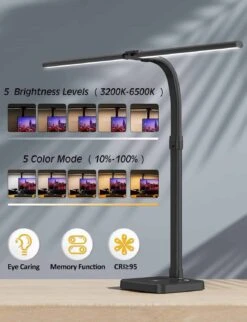 - Multiple Brightness Modes: The desk lamp for office home has 5 brightness modes (20%-100%) and 5 color temperatures (3200K-6500K). Moreover, the computer desktop desk lamps has a memory function, and it will maintain the previous mode when it is lit again. It is very convenient to use.