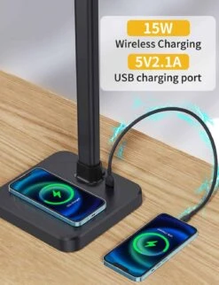 - USB Charging & Wireless Charging: The work lamp base is equipped with a 5V2A USB charging interface and a 15W fast wireless charging function. You can charge two devices at the same time while using the desk lamp. The table light cord is 6 feet long and comes with an adapter. You don’t need to buy adapters separately