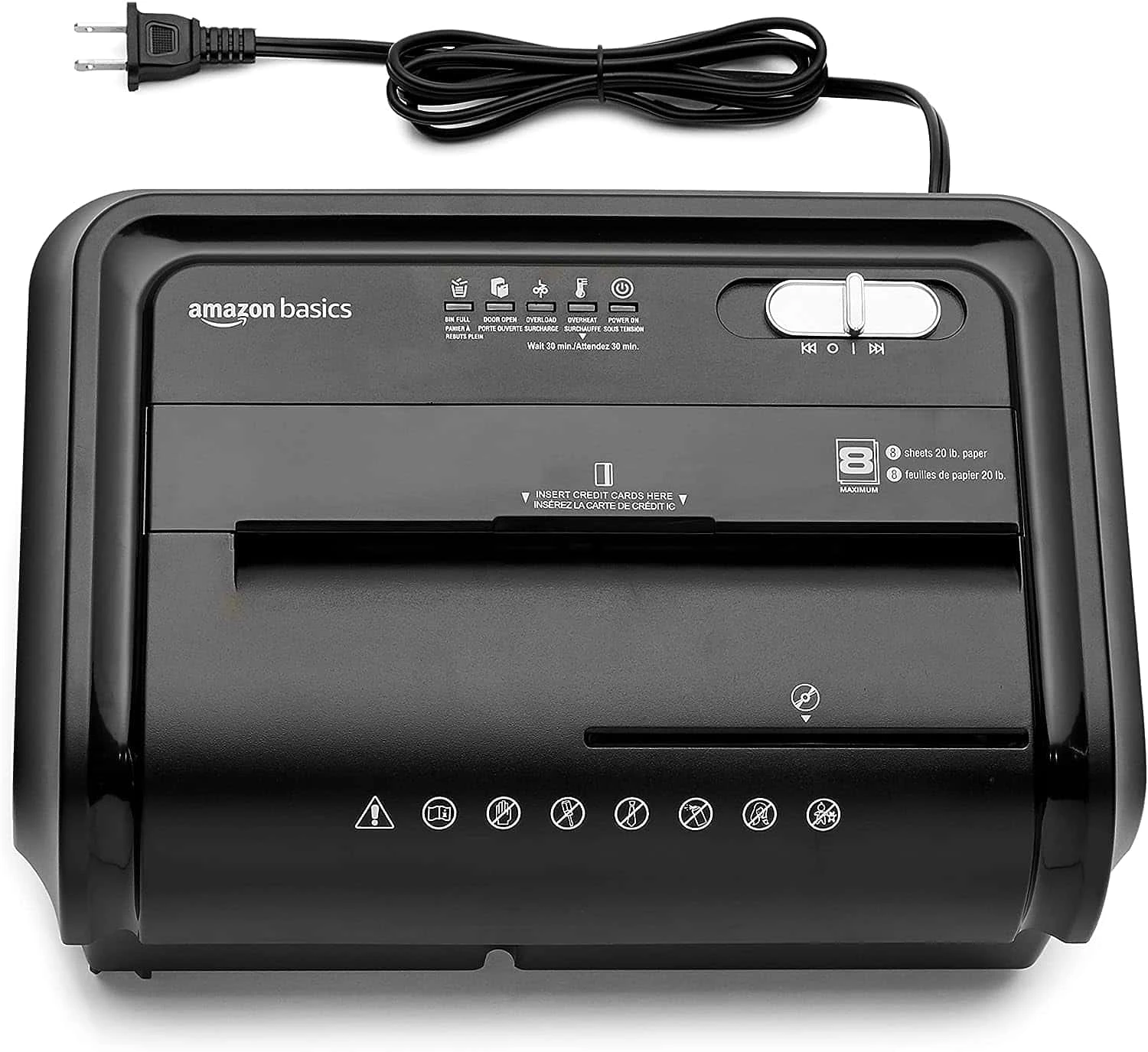 Amazon Basics 8 Sheet High Security Micro Cut Shredder with Pullout Basket, Black