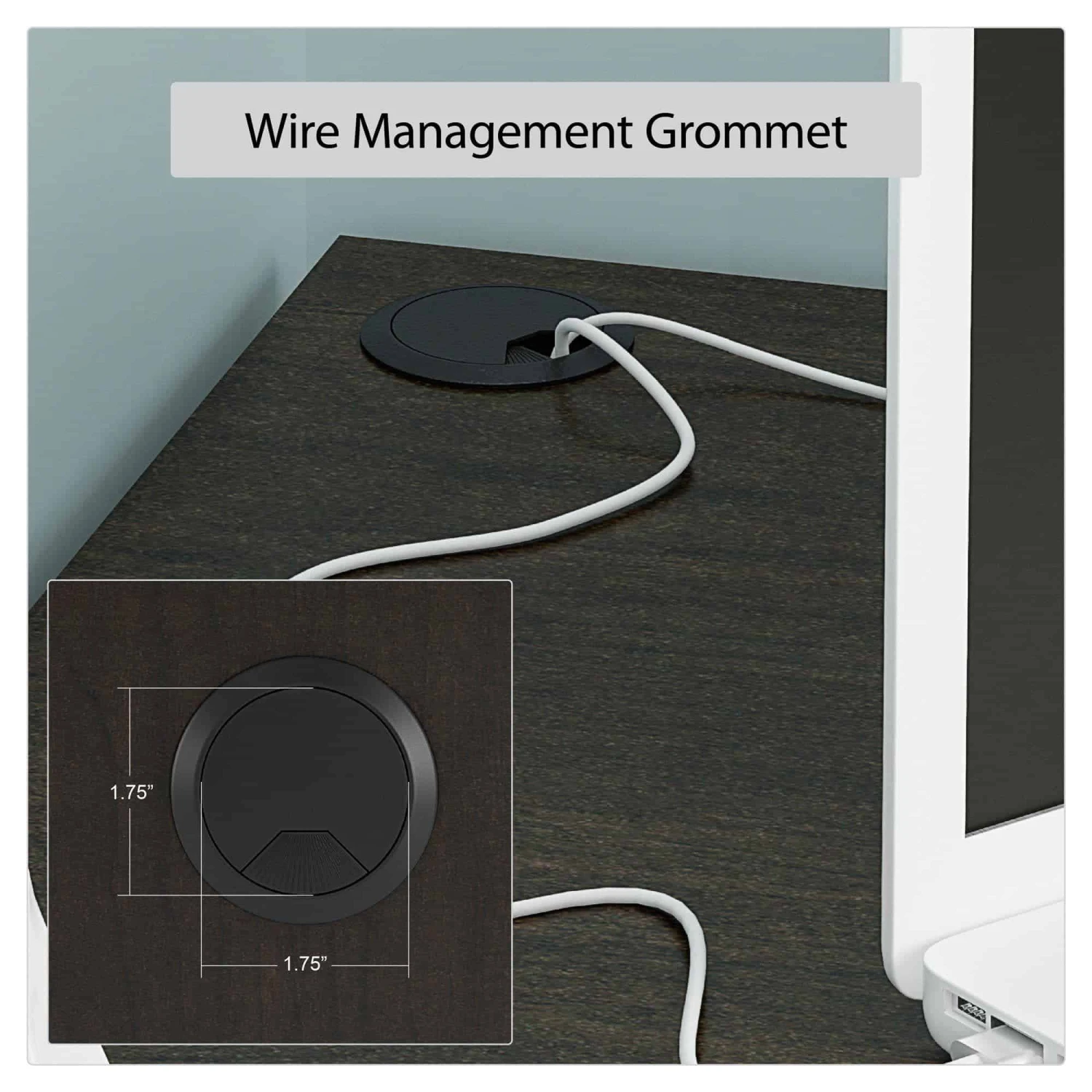 - This Desk fits perfectly in a corner or up against any wall and features a large top surface, extra side storage and grommet holes to keep your cords tangle free