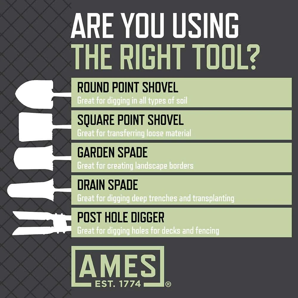 The Ames D-Handled Drain Spade is designed for multiple uses with its long and narrow blade. It’s the best tool for uprooting and transplanting live trees and shrubs. It can also be used for digging deep holes, cleaning out ditches or trenches and working in tight spaces.