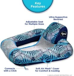 AQUA Zero Gravity Pool Chair Lounge, Inflatable Pool Chair, Adult Pool Float, Heavy Duty, Blue Fern