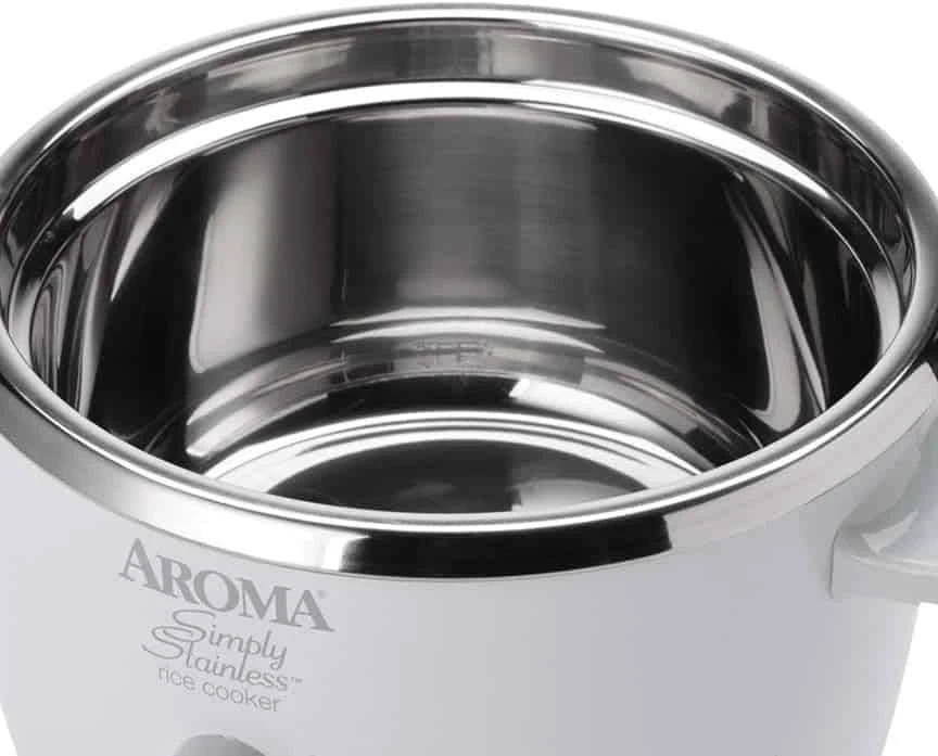 Enjoy easy home cooking with the AROMA 6-Cup (Cooked) Select Stainless Rice Cooker. Restaurant-quality rice. Healthy steamed meals. Delicious one-pot dishes. Prepare all this and more at the flip of a switch! Aroma takes the ââcookââ out of home cooking â turning kitchen time into your time! Help the kids with homework, get creative at play time or pick up that novel youâve been waiting to dive into. All while delivering hot, hearty and healthy meals the entire family will love. This convenient cookerâs compact capacity perfectly cooks 2 to 6 cups of any variety of rice. Once the rice has finished, it will automatically switch to Keep-Warm so thereâs no need for monitoring or stirring. Itâs also perfect for oatmeal, chili, jambalaya, soups and so much more! The cooking pot is made completely of food-grade 304 stainless steel for worry-free cooking and superior results. And when the cooking is done, the inner cooking pot and all accessories remove for easy cleanup in the dishwasher. Accessories included: rice measuring cup and serving spatula.