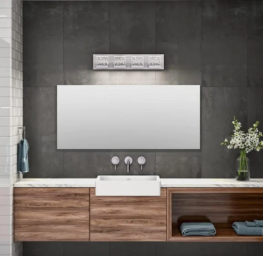 Artika’s 4 light LED Bathroom Vanity Light Bar with bubble shades creates a personalized visual effect to complement any interior. This vanity light bar features 4 glass cubes, enhanced by the presence of various small luminous bubbles, make for an artistic lighting effect and bring a high level of elegance to your decor. Their glow fills the whole space and is magnified by the chrome finish of the piece. Placing this bathroom vanity light fixture above a mirror or a counter is an elegant way to make a room instantly more alluring. As aesthetically pleasing as it is durable, the bubble cube is a unique and highly-customizable model. Its integrated LED lighting offers an array of different lighting options while also allowing you to conserve energy. Integrate it into your space without delay to benefit from an added touch of elegance.
