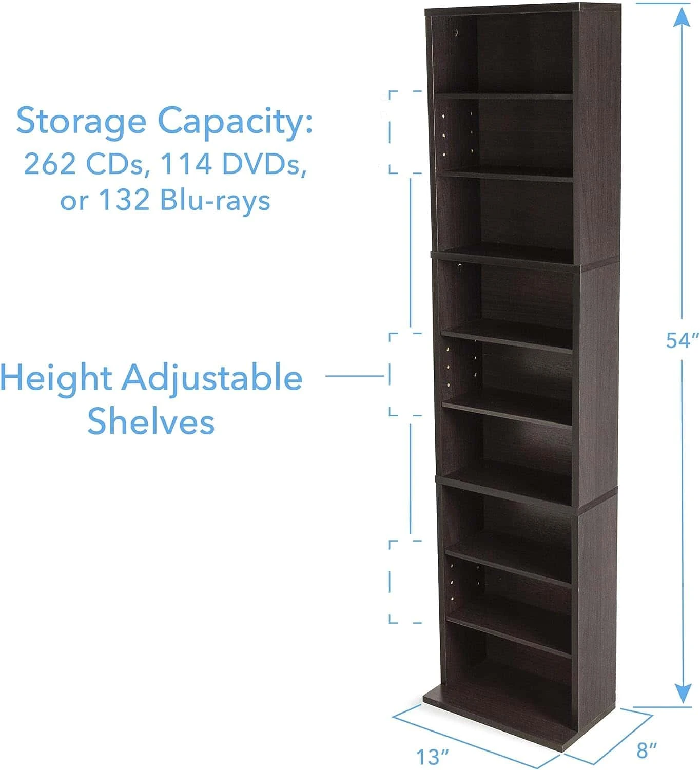 - ORGANIZED MEDIA: The Summit media storage cabinet is great for DVD storage, Blue Ray discs, video games, books, CD’s, and keepsakes. It can store up to 261 CD’s, 114 DVD’s, or 132 Blue Ray discs