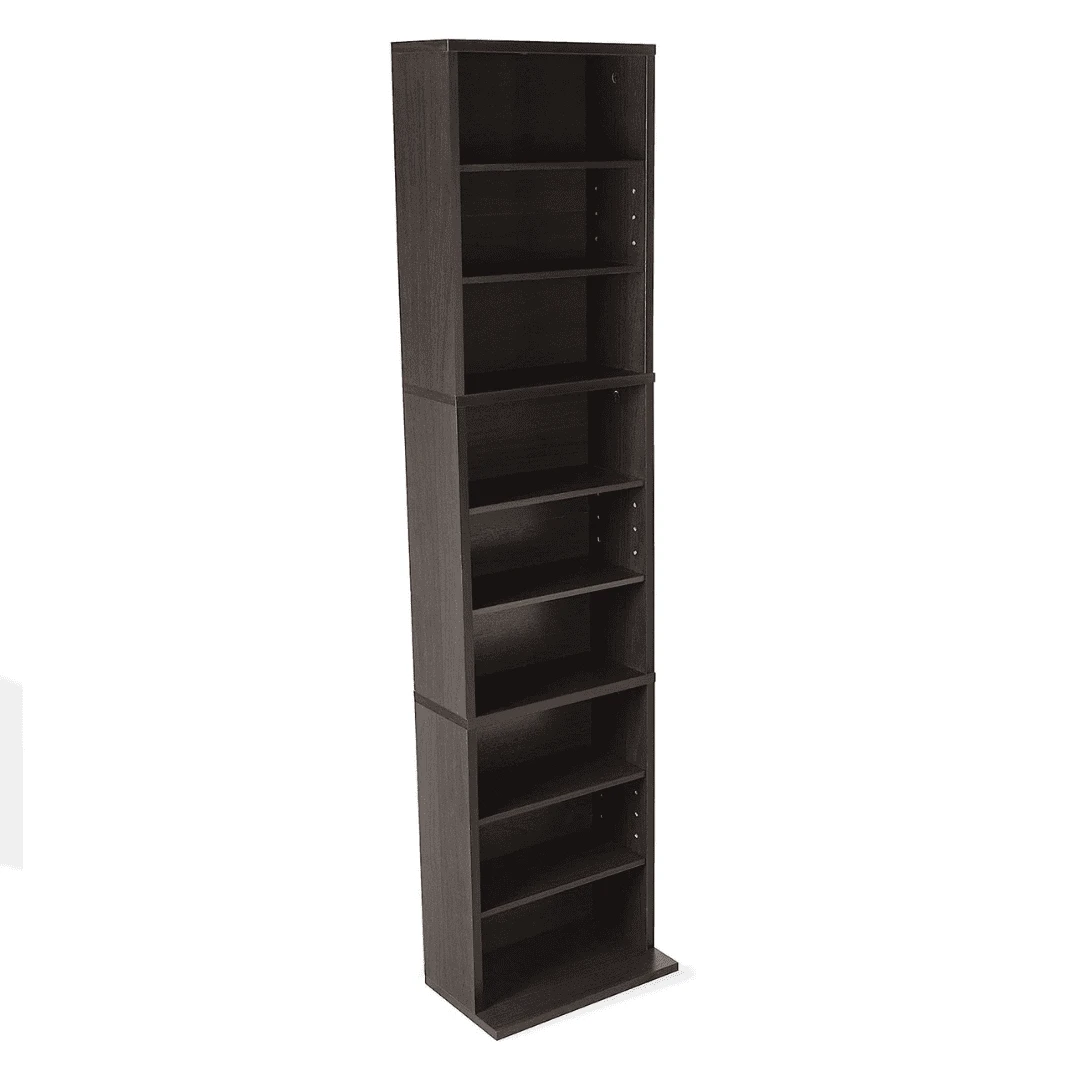 Use Summit’s flexible combination of shelving options creatively to keep your prized collections of music, movie, video games, toy figurines, rare coins, mineral stones or sports memorabilia well protected and organized. Slender space-saving footprint and clean outline help the Atlantic Summit media storage cabinet to blend in easily with just about any style of home decoration. With various shelving options, Summit maximizes storage capacity to accommodate various types of contents while occupying space measuring 13” x 8”. Easy assembly and easy-to-clean surface provide a quick solution to protect your valuable collections while showcasing them in an organized and professional manner. Extended base and included wall anchoring brackets provide additional stability and safety. For best results, always place the Summit on a leveled surface, load heavier and larger items on the lower half of the cabinet to balance the weight, and ALWAYS install the included wall anchoring brackets. Enjoy!