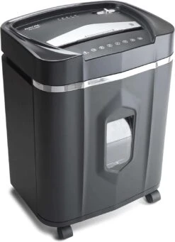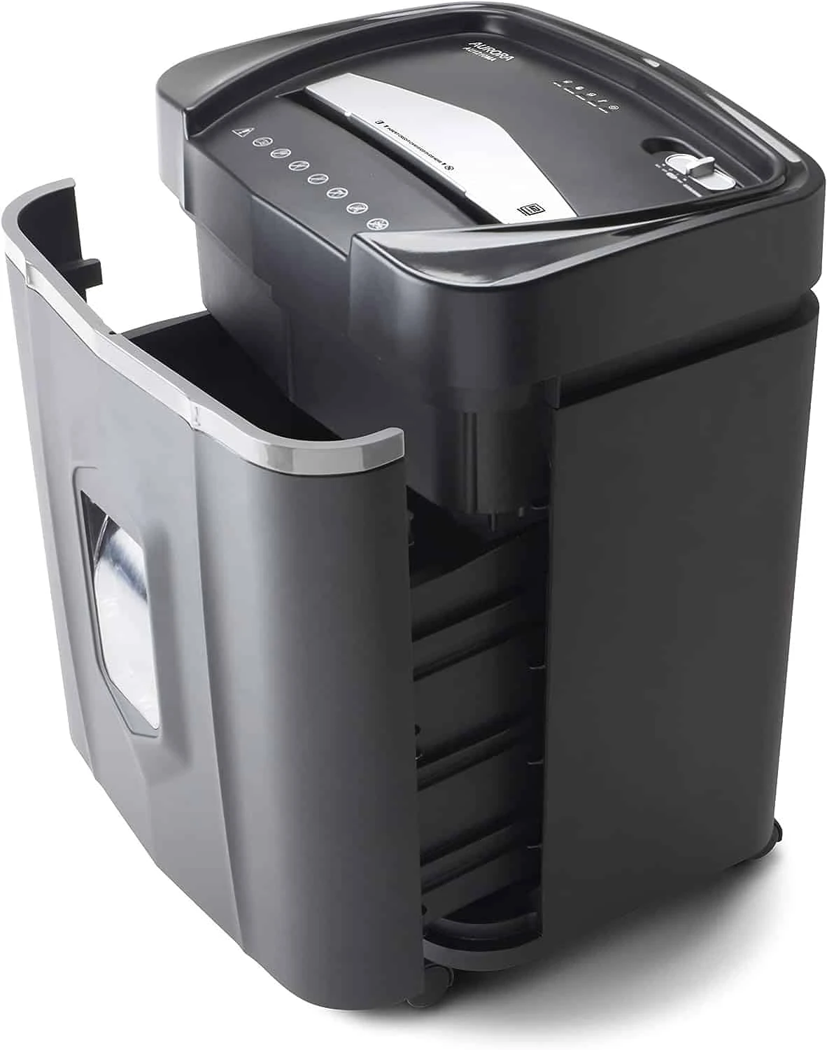 - High security micro-cut with 12 sheet capacities; destroys CDs, DVDs, credit cards and small paper clips