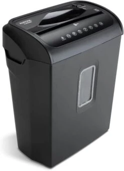 The micro cut paper and credit card shredder with basket is the perfect home and small office device to help keep you safe from identity theft. In addition to paper, this shreds credit cards, keeping vital information from falling into the wrong hands. The throat of the shredder is 8.7″ wide and allows continuous shredding for 4 minutes.
