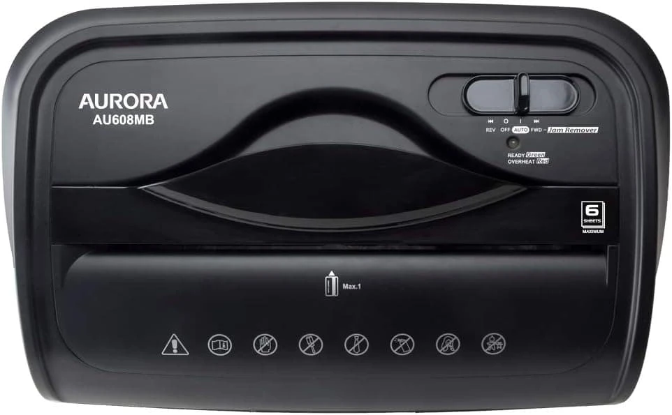 Aurora AU608MB High-Security 6-Sheet Micro-Cut Paper Credit Card Shredder with 3.5-Gallon Wastebasket, 4-Minute Continuous Running Time, Security Level P-4