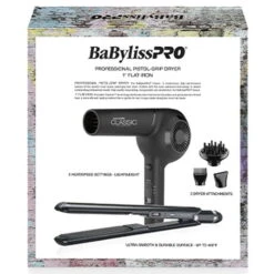 This Limited Edition Gift Box includes two of our top-selling items: The BaBylissPRO Classic Dryer & BaBylissPRO Porcelain Ceramic 1″ Flat Iron – a total value of $174.98 BaBylissPRO Classic Dryer (Black) & BaBylissPRO Porcelain Ceramic 1″ Flat Iron Prepack.