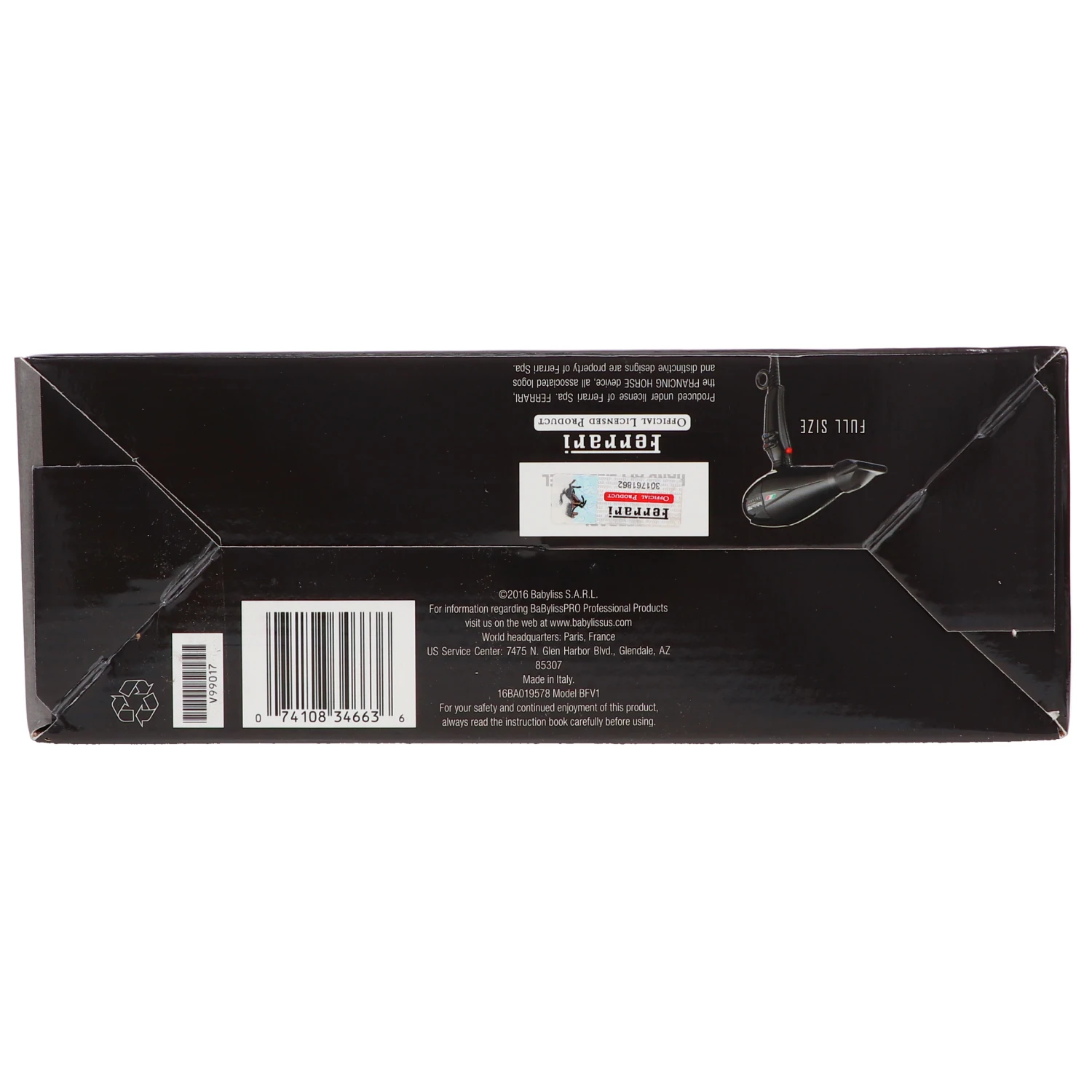 BaBylissPRO Nano Titanium Volare V1 Full-Size Dryer Ferrari-Designed Engine Black
