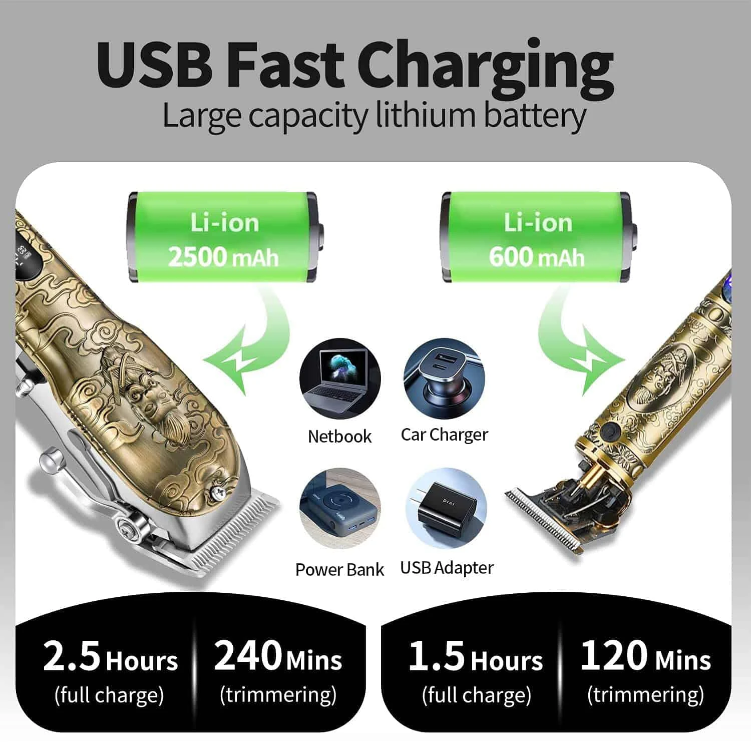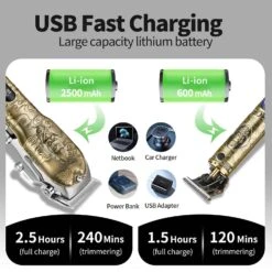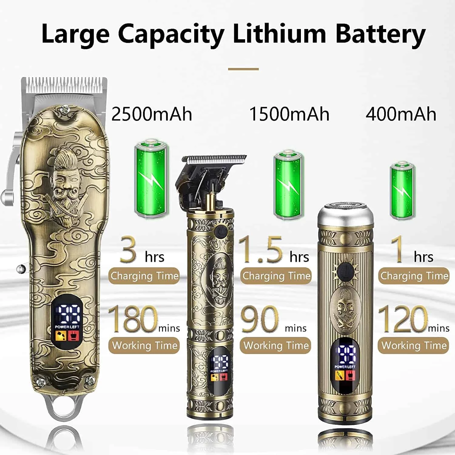 - [ Long Battery Life &Digital Display] Built-in rechargeable premium and safer battery, offers up to 180 minutes of running time with charging 3 hours for the hair clipper , offers up to 90 minutes of running time with charging 1.5 hours for the hair trimmer,offers up to 120 minutes of running time with charging 1 hour for the nose trimmer .The LED light indicates the remaining battery power, and promptly reminds you to charge.