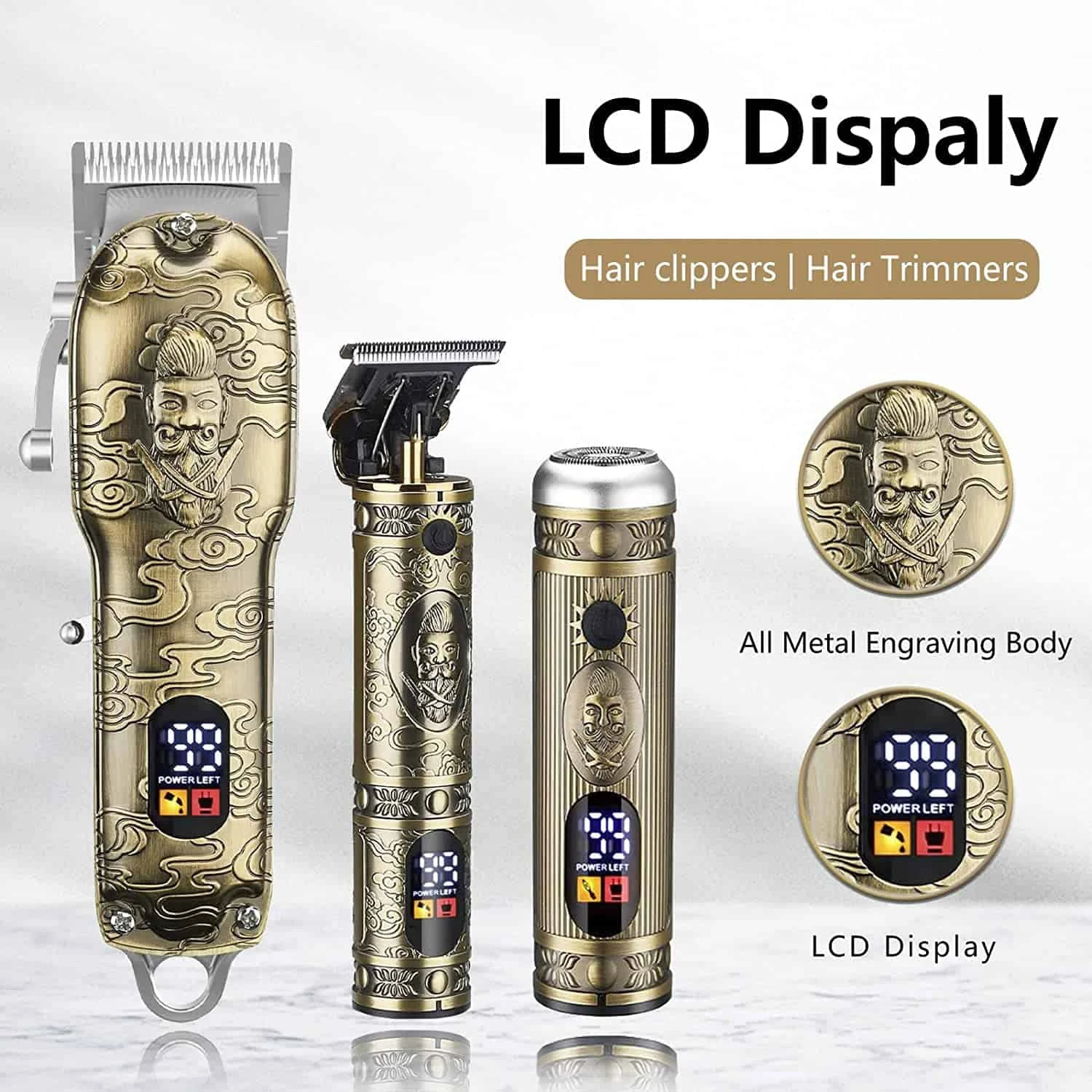 BerZalah Hair Clippers for Men Beard Trimmer Nose Hair Trimmer 3pcs Set, USB Rechargeable LED Display