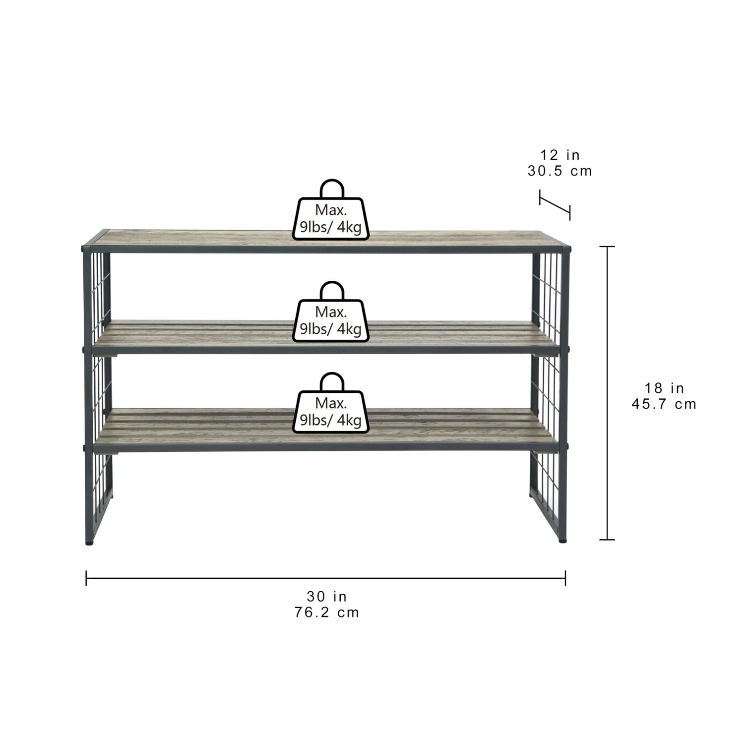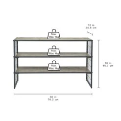 Better Homes & Gardens Farmhouse 3 Tier Shoe Rack, Gray, 30IN Wx 12 IN Dx 18IN H, Holds up to 12 Pairs
