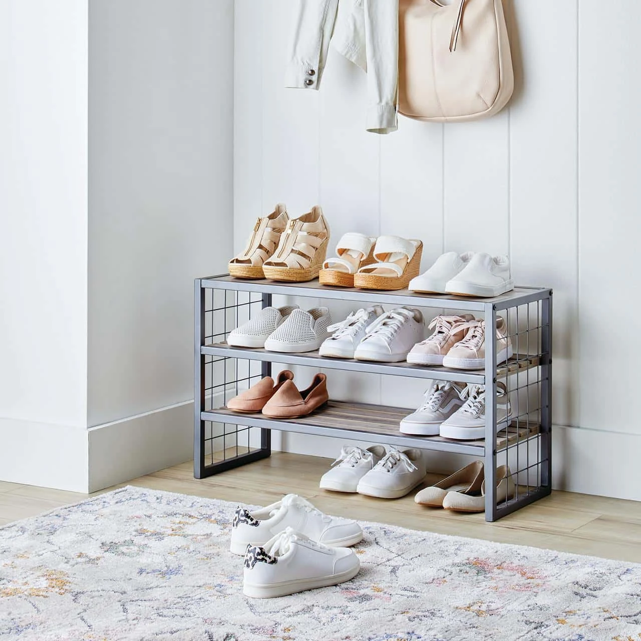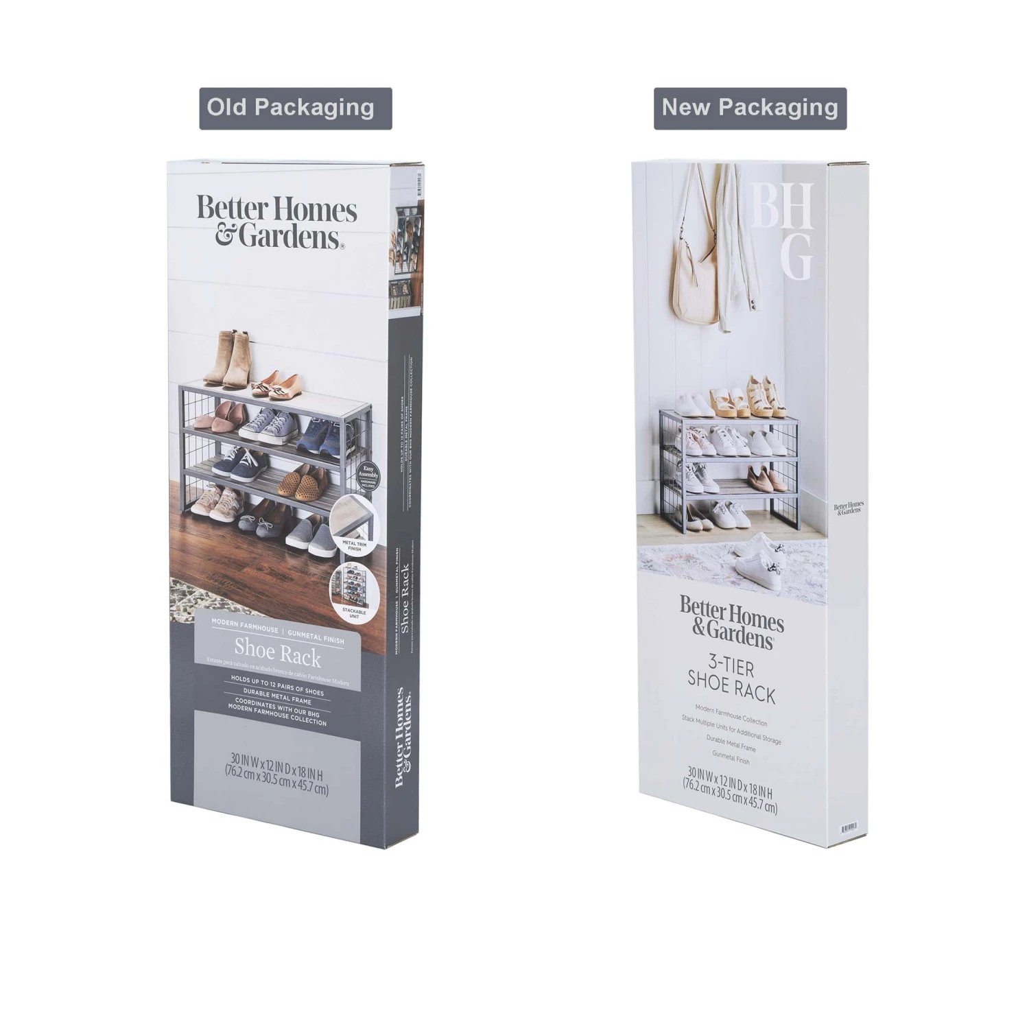 - Better Homes & Gardens Farmhouse 3 Tier Shoe Rack, Gray, Holds up to 12 Pairs