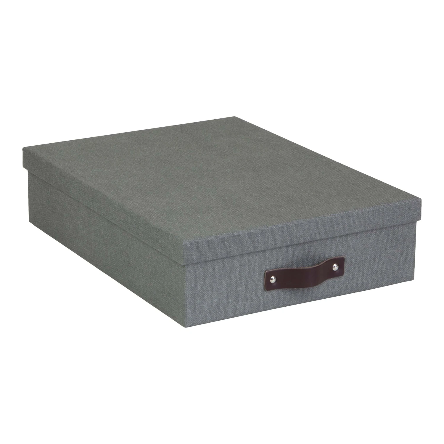 Bigso’s Oskar Canvas Fiberboard Document Letter Box increases your efficiency by storing and sorting all of your documents and important paperwork! It is an attractive decorative feature while organizing your papers, photos, bills, letters and more. The 3.4″ x 10.2″ x 13.8″ size allows it to hold standard A4 or letter size paper while the lid fits perfectly to preserve and protect your documents. A leather handle is included for easy retrieval and enhances the look of the box.