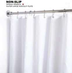 NO TOOLS, NO SCREWS, NO HOLES, No Damaging of Ceramic, No Drilling, Super-large non-slip plate, shower rod + spring tension. 304 Stainless Steel Shower Curtain Rod Shining Like Mirrors. Five Years Non-Rust High Quality 304 Stainless Steel. Shower Rod That are Easily Relocated, and You Can Bring it Easily When Move.