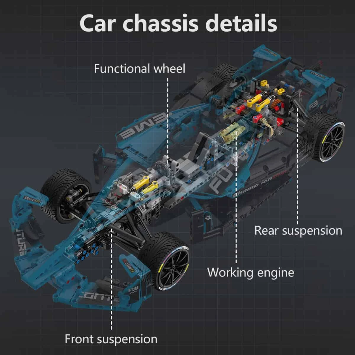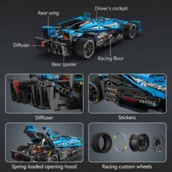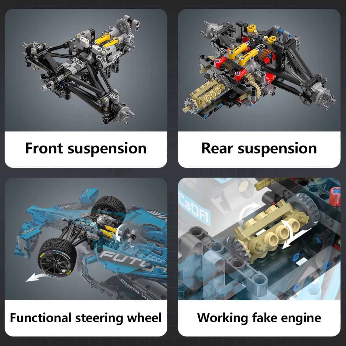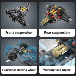 - The push-rod independent suspension simulated by the front and rear wheels, the linkage between the engine and the rear wheels, the linkage between the steering wheel and the front wheel, the rear hood with a spring-assisted structure, etc., the rich technology kits greatly increase the model car playability and expandability of the set.