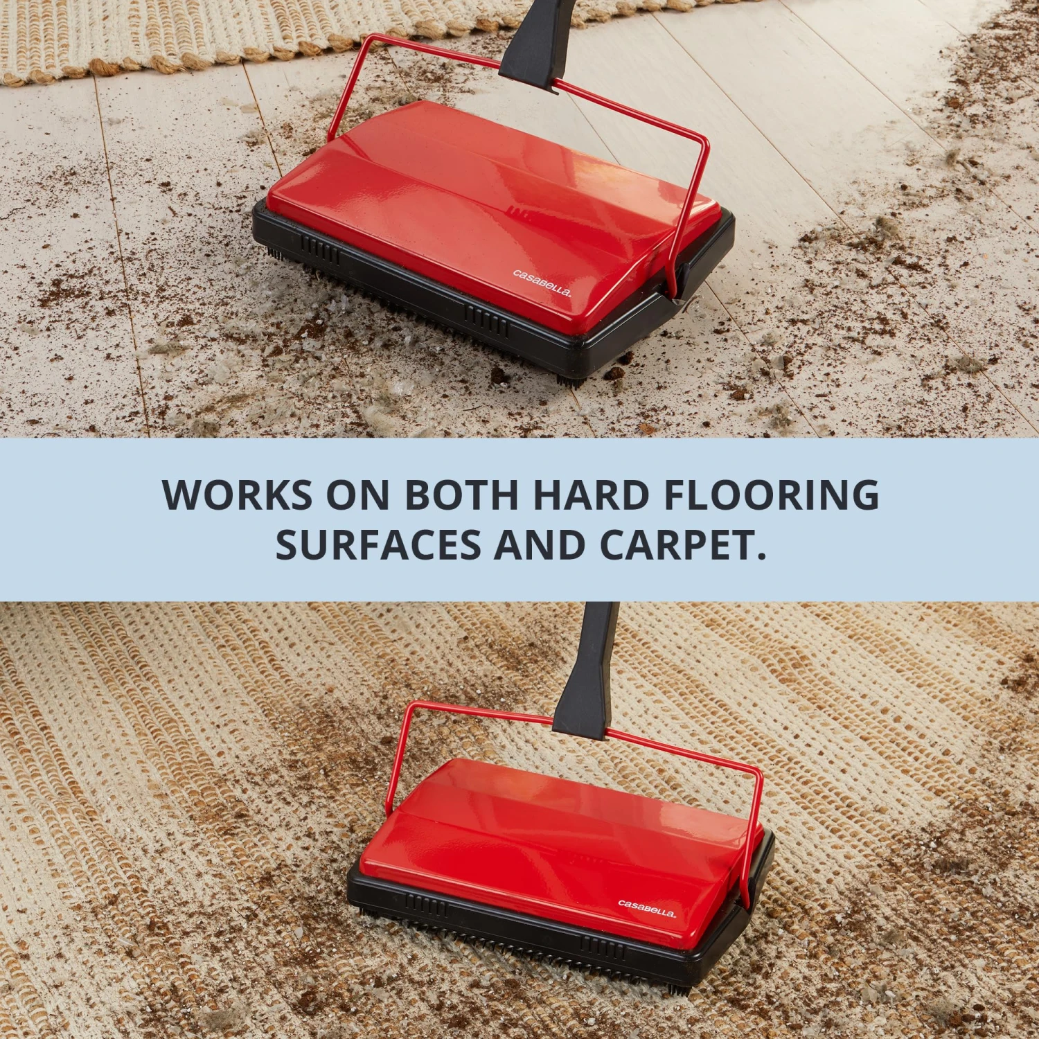 Casabella Electrostatic Floor And Carpet Sweeper, Non-Electric Vacuum Broom and Hand Push Floor Sweeper, Red