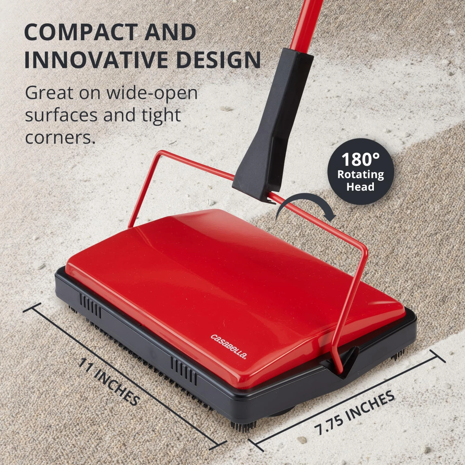 - ELECTROSTATIC MANUAL CARPET SWEEPER: Level up your cleaning routine with the Casabella 11-inch Electrostatic Carpet & Push Vacuum Sweeper, your go-to solution for efficient cleaning without the hassle of cords and noise. This hand push floor dust sweeper excels on carpets, hard floors, and even in tight corners. Say goodbye to clunky vacuum cleaners and embrace the efficiency of this lightweight dust and dirt vacuum broom sweeper.