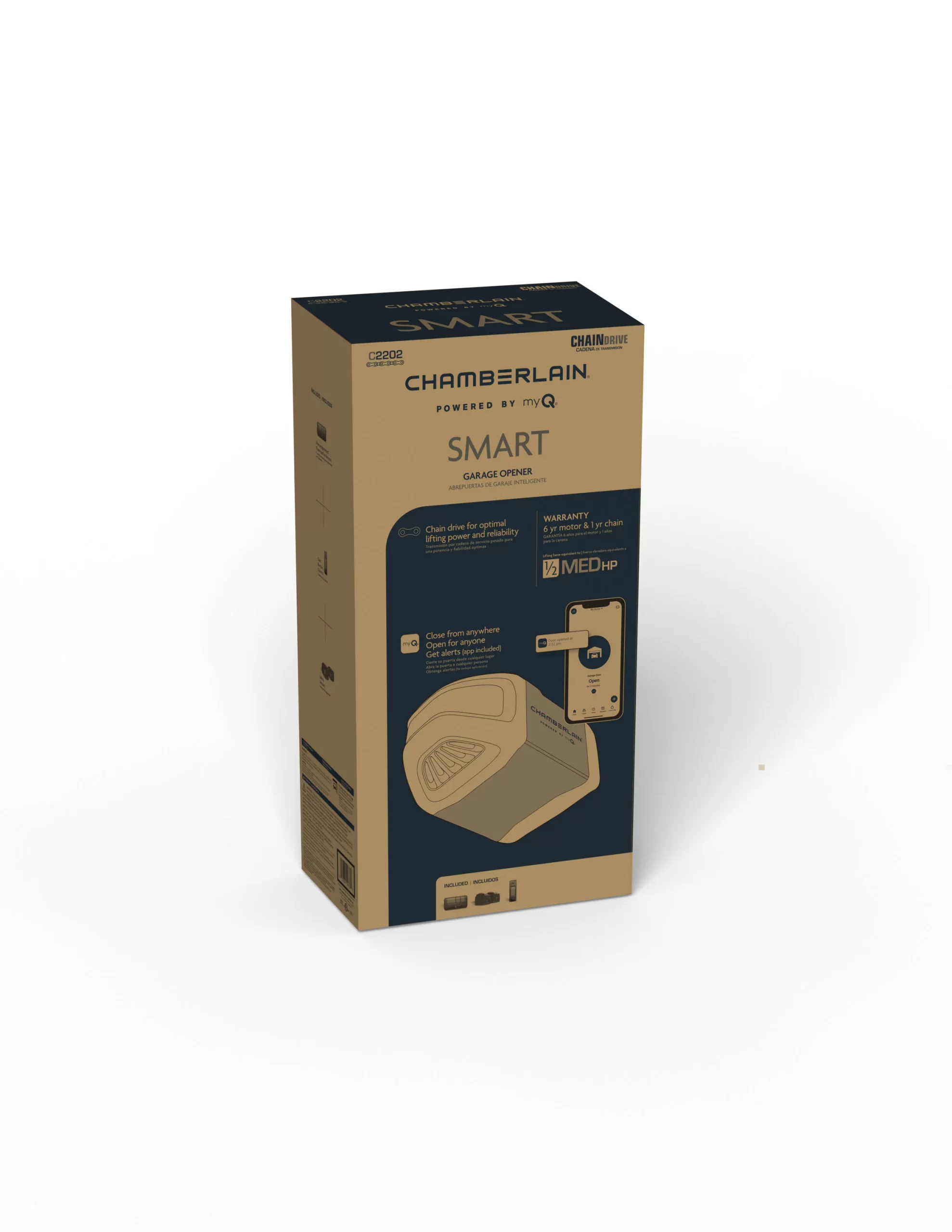 Perfect for detached garages, the C2202 is a hardworking and reliable opener with integrated myQ technology that lets you control, secure and monitor your garage from the myQ app – anytime, from anywhere. The powerful C2202 includes:
