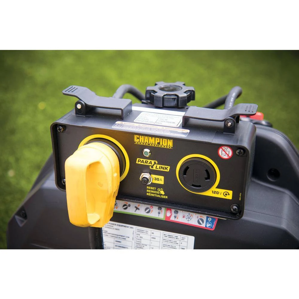 CHAMPION POWER EQUIPMENT 100740 30 Amp RV Ready Parallel Kit is designed to instantly increase your power and save space by linking any two 2000-Watt to 3000-Watt inverter generators. This kit is perfect for when you want the flexibility of using a lightweight on the go inverter to power a few appliances but also want the capability to connect 2-lightweight and ultra-quiet inverters to get the power of a larger unit when you need it. Specifically designed to connect 2 ParaLINK ready Champion inverters, this innovative Parallel Kit quickly and seamlessly integrates the 2 and attaches with a simple hand-tightened clamp – no tools necessary. This kit also includes spring-loaded clamps for cable storage. The parallel kit sits on top of the inverter giving you easy access to the standard 120-Volt 30 Amp (TT-30R) RV outlet and 120-Volt 30 Amp locking outlet (L5-30R). Designed for safety, Champion also includes a 30 Amp circuit breaker to prevent overloads. This RV Ready Parallel Kit gives you the ability to mix and match inverters to get up to double your power and even start and run a 15,000 BTU RV air conditioner. Buy with confidence – Champion Support and our nationwide network of service centers will back up your purchase with a 1-year limited warranty and FREE lifetime technical support.