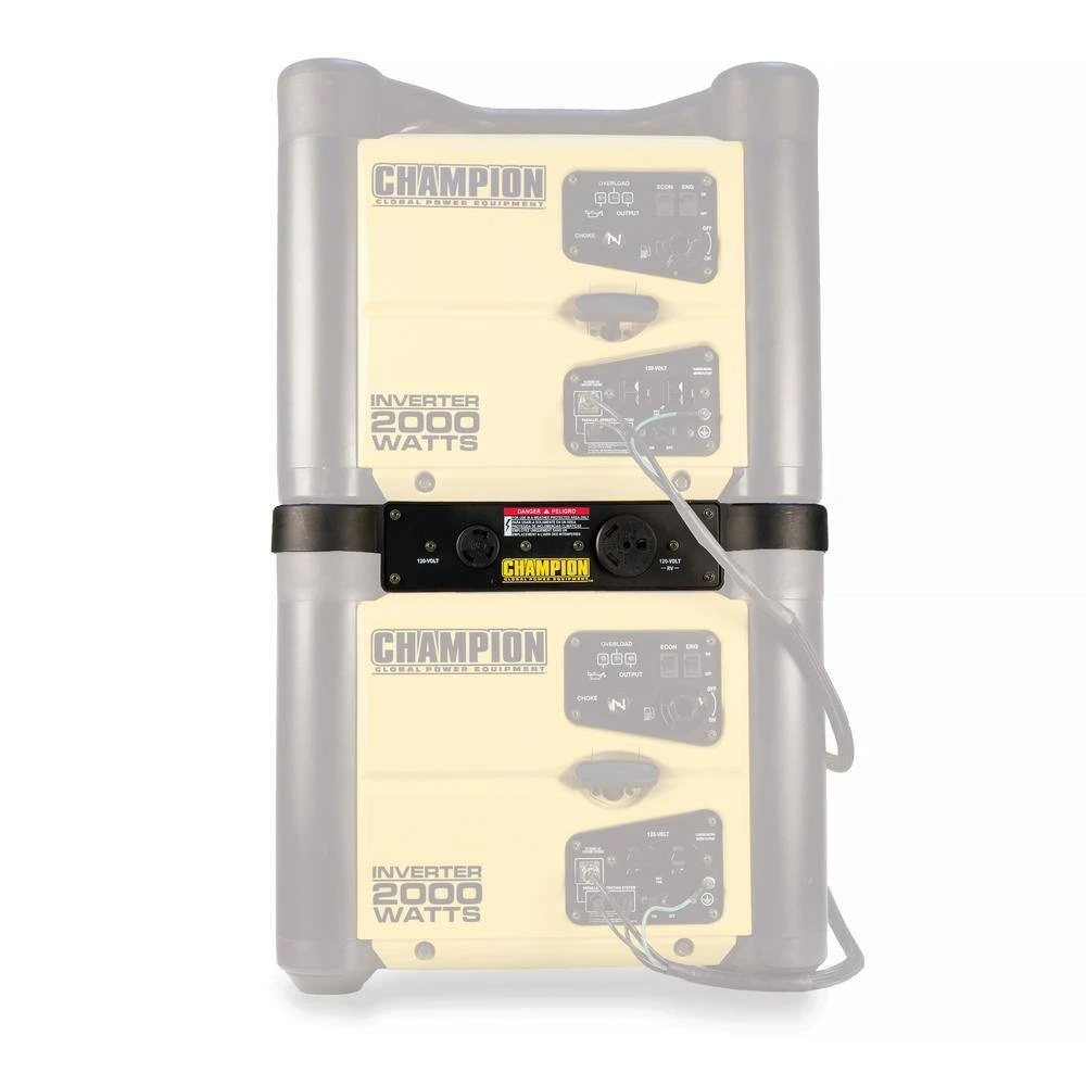 Champion Power Equipment 73500i 30A RV Ready Parallel Kit is designed to instantly increase your power and save space by linking 2 stackable 2000-Watt inverter generators. Specifically designed to fit between two 2000-Watt Champion inverters, this innovative Parallel Kit seamlessly integrates the 2 inverters with a simple stacking setup no tools necessary. Your receptacles stay in a convenient position off the ground, giving you easy access to the standard 120-Volt 30 Amp RV (TT-30R) and 120-Volt 30 Amp locking outlets (L5-30R). This RV Ready kit gives you 30 amps of output enough power to start and run a 15,000 BTU RV air conditioner. Buy with confidence Champion Support and our nationwide network of service centers will back up your purchase with a 1-year limited warranty and free lifetime technical support.