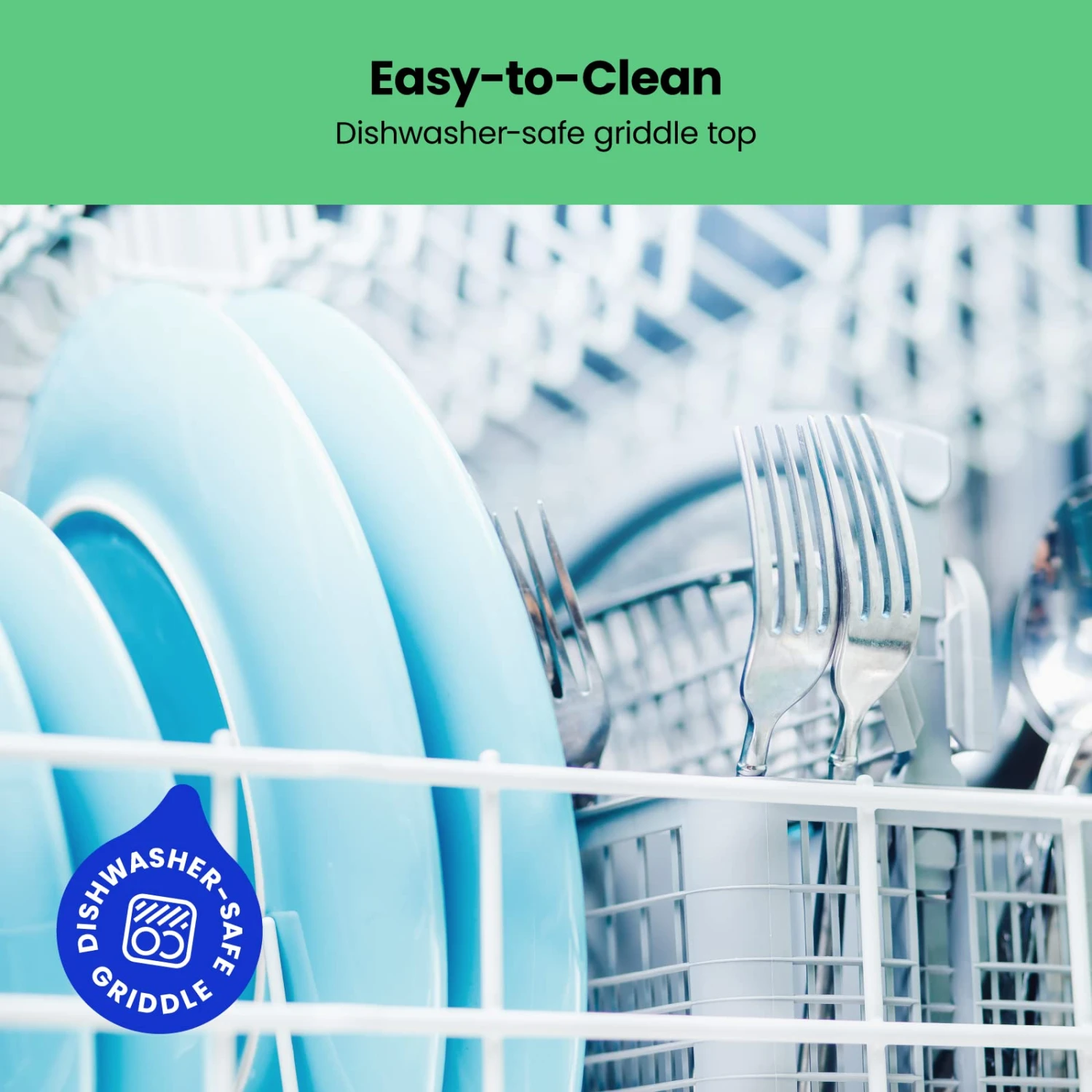 - EASY CLEANING: The griddle grill cook top is fully immersible and dishwasher safe – simply remove the temperature control prior to washing.
