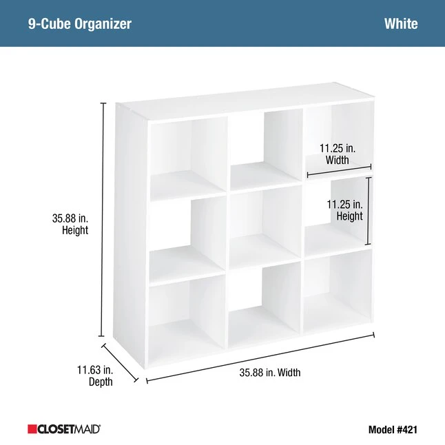 ClosetMaid 35.88-in H x 35.88-in W x 11.63-in D White Stackable Wood Laminate 9 Cube Organizer