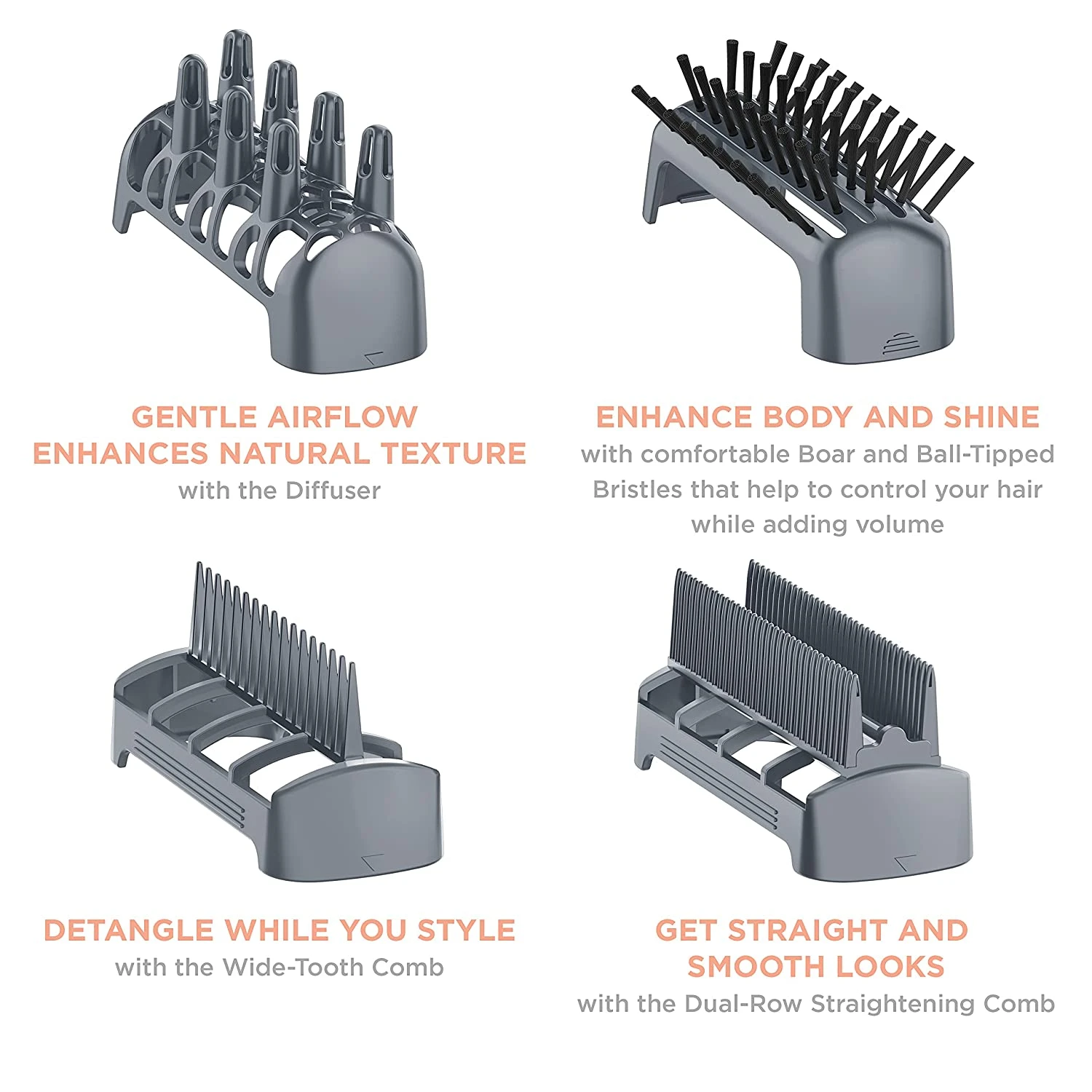 - Styling Control: 3 Heat / 2 Speed settings to customize your own unique style + Cold Shot button to lock style in place! Includes 4 attachments for natural texture, enhanced body & shine, detangling, and dual-row straightening comb for sleek smooth styles.