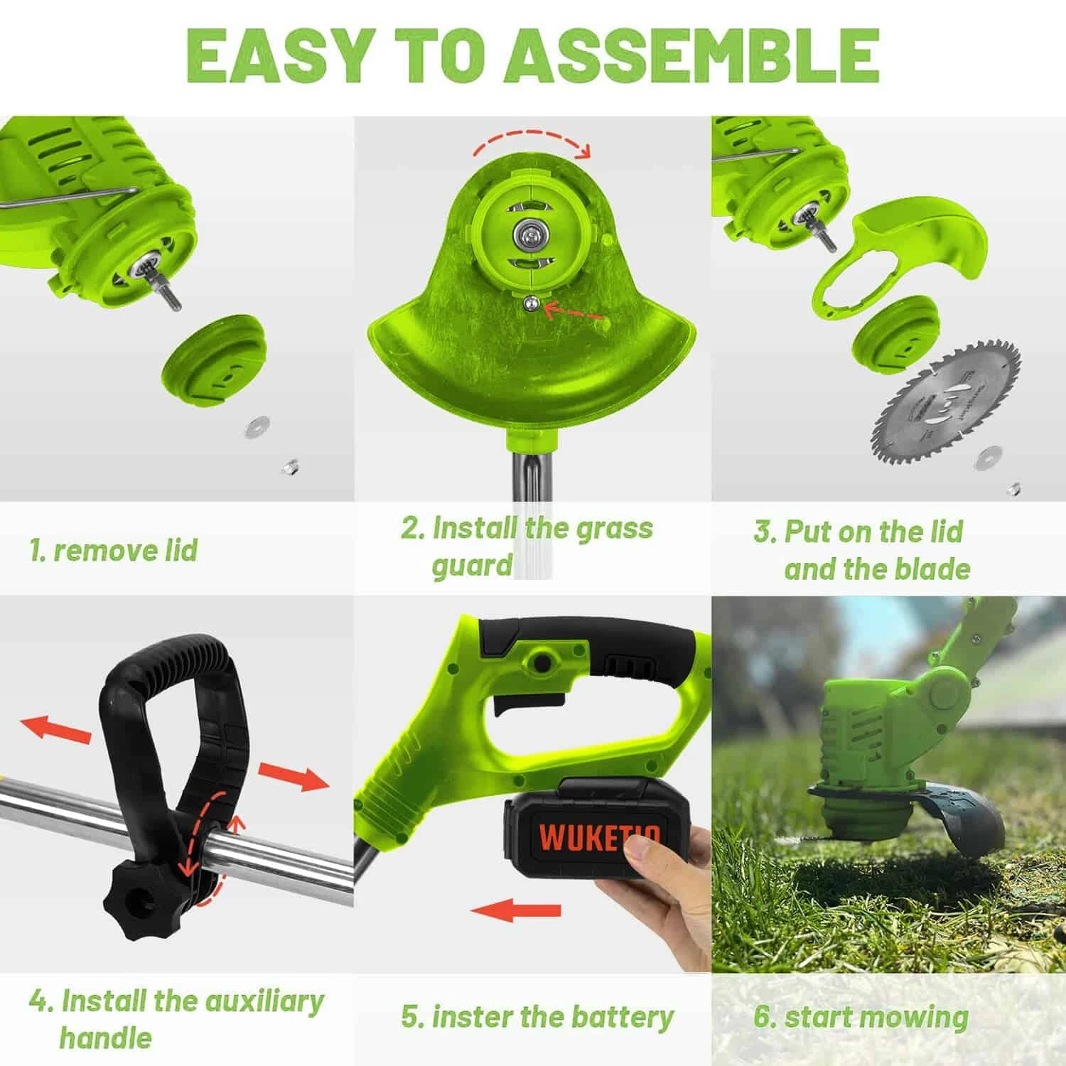 - 【Strong Motor & Lightweight】: Cordless weed trimmer provides 500W motor with longer run-time, and more power which leads to less wear and tear, extending the life-time of the weed wacker,The cordless weed eater body weighs just 3.88lb,which is lightweight and comfortable to hold, Very suitable for women and the elderly.