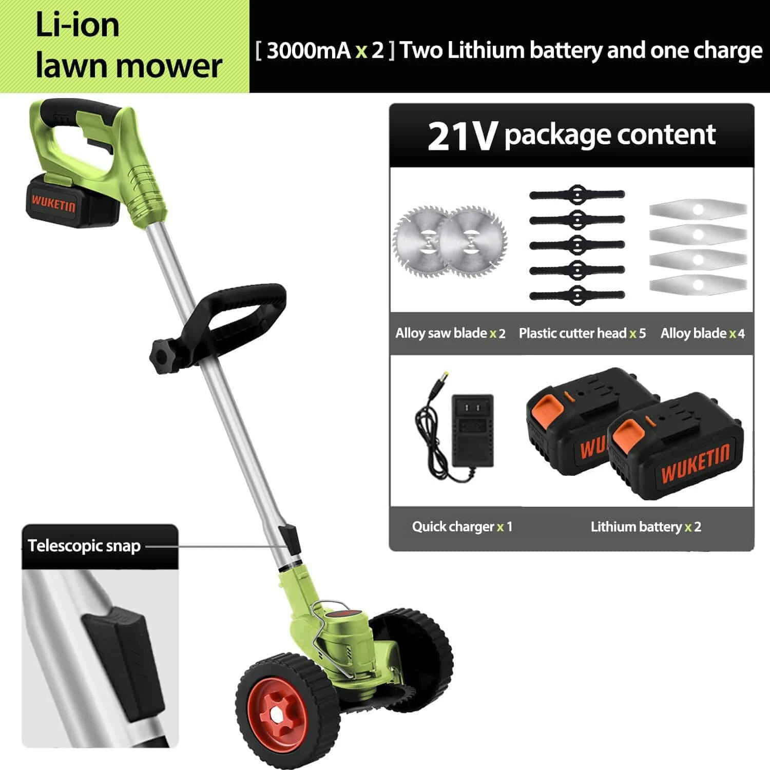 1. Two PCS 2.0Ah Long-Life Battery: A single battery for the cordless weed eater ensures that the mower can be kept running for more than 45 minutes, 2 batteries allow the battery to be charged and trimmed at the same time.