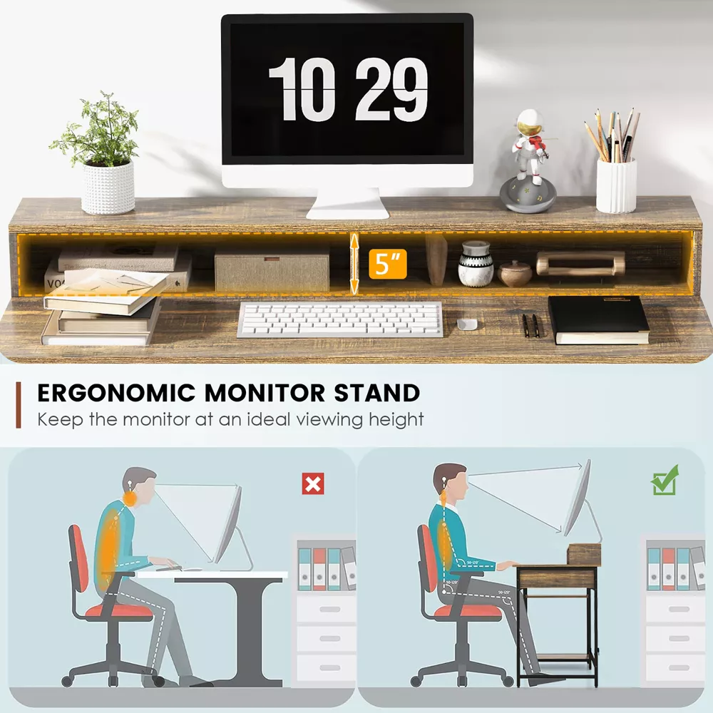 - Ergonomic Monitor Stand: The computer desk comes with a 5β tall monitor stand that can keep the monitor at an ideal viewing height. Thus, it can help improve sitting posture, relieve spine pressure and boost work productivity.