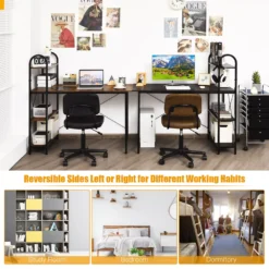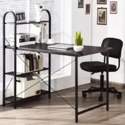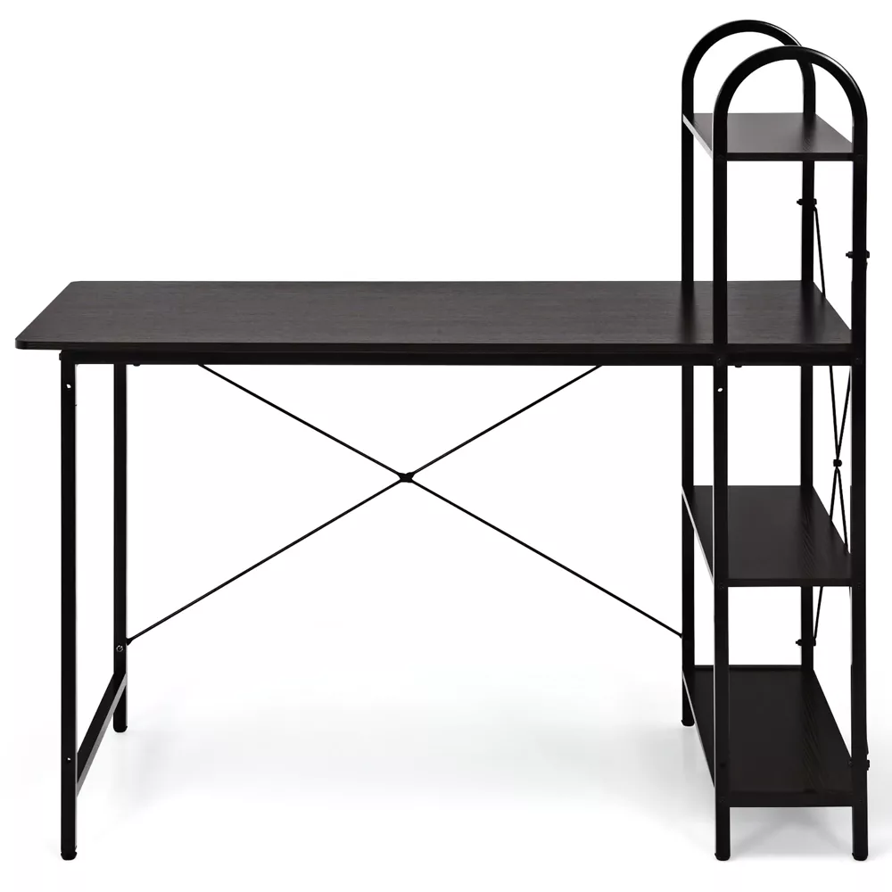 Are you still troubled by a workstation that is not spacious enough? It’s time to change to a wide computer desk. Designed with the metal construction, the computer desk is excellent in sturdiness, which shows in the overall weight capacity up to 198 lbs. The dimension of the desktop is 23.5” x 48”, which is spacious enough for a common computer and other items. On the side, there is a 4-tier open shelf where you can store many office supplies. As the shelf is reversible, you can freely place it in the right and left corners. Therefore, it is very suitable for small rooms.