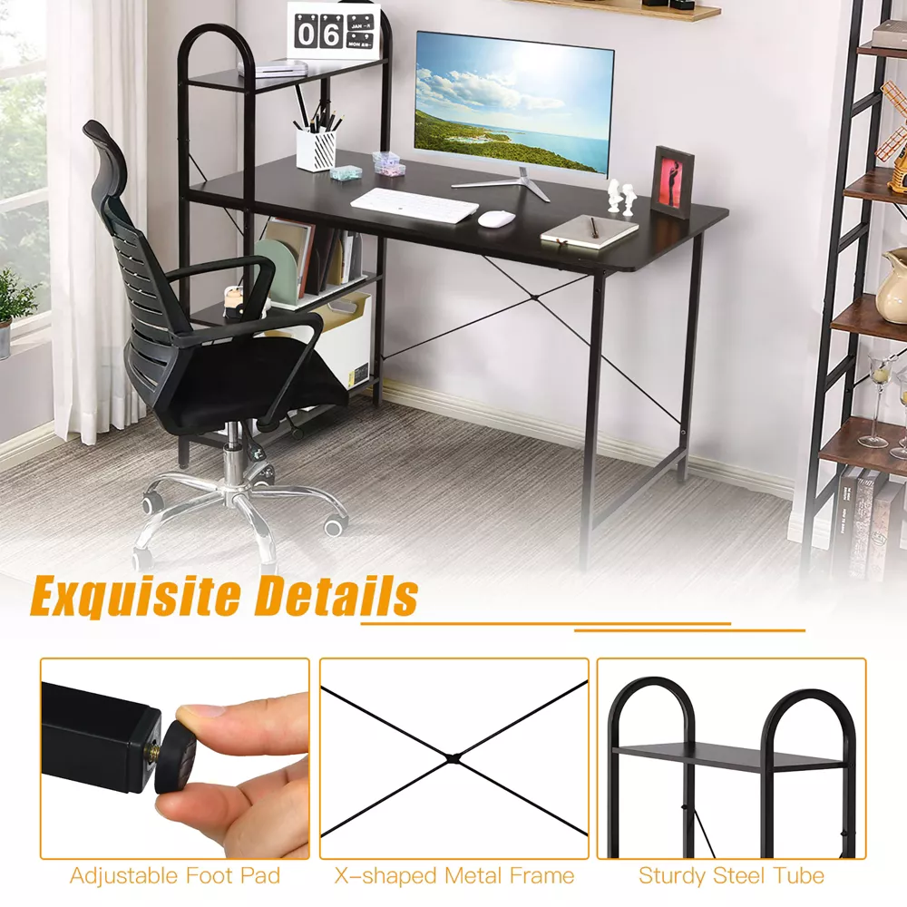 Costway 48” Reversible Computer Desk Writing Table Workstation w/ Storage Shelf BlackBrown