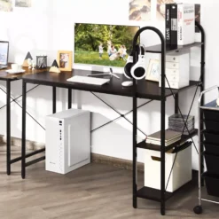 - Great Storage Helper: Apart from wide desktop, the writing desk is also equipped with a 4-tier storage shelf. You can sort and place items on the shelf in a customizable manner. Besides, the storage shelf is within easy reach, so you can conveniently get what you need at busy work.