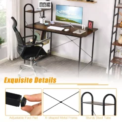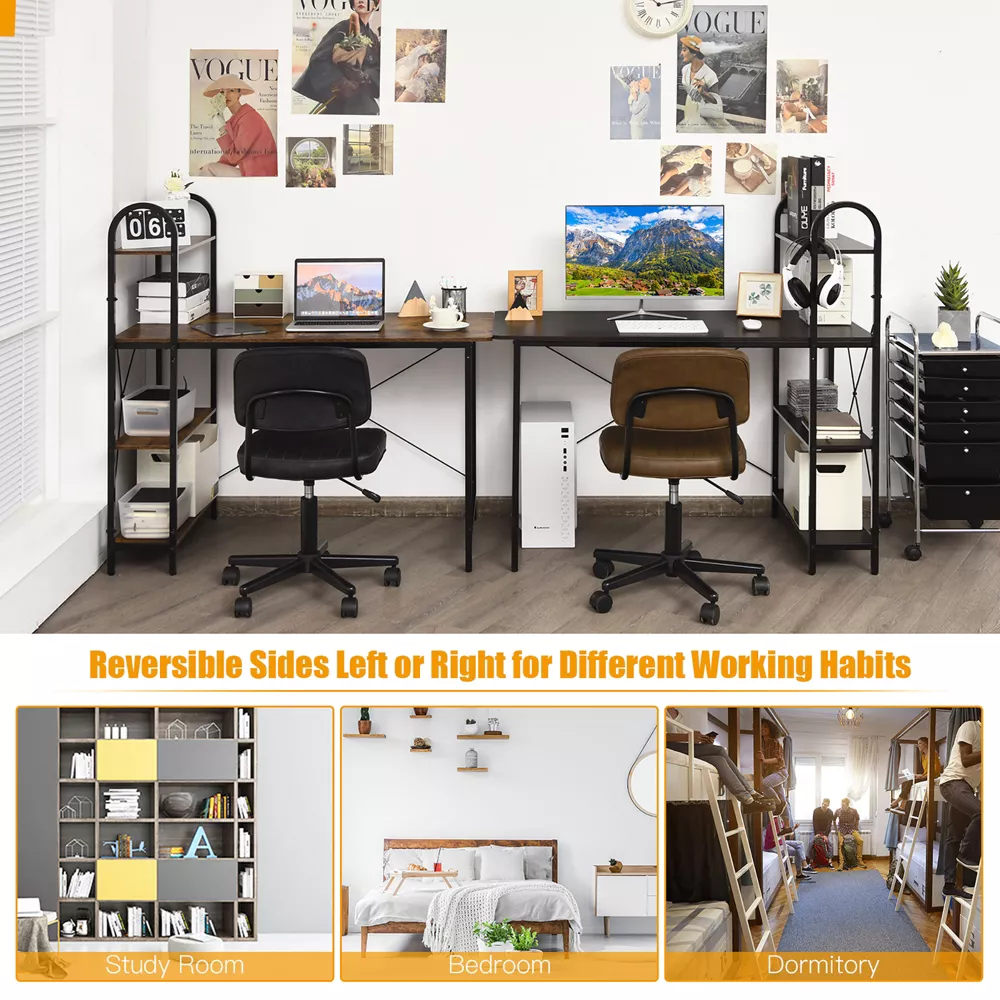 Costway 48” Reversible Computer Desk Writing Table Workstation w/ Storage Shelf BlackBrown