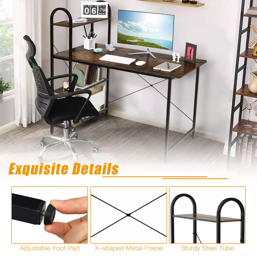 - Great Storage Helper: Apart from wide desktop, the writing desk is also equipped with a 4-tier storage shelf. You can sort and place items on the shelf in a customizable manner. Besides, the storage shelf is within easy reach, so you can conveniently get what you need at busy work.